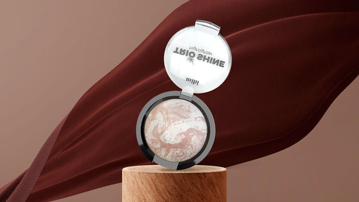 Trijų švelnių atspalvių prabangių kepintų ryškalų paletė, tinkanti kiekvienam odos atspalviui.